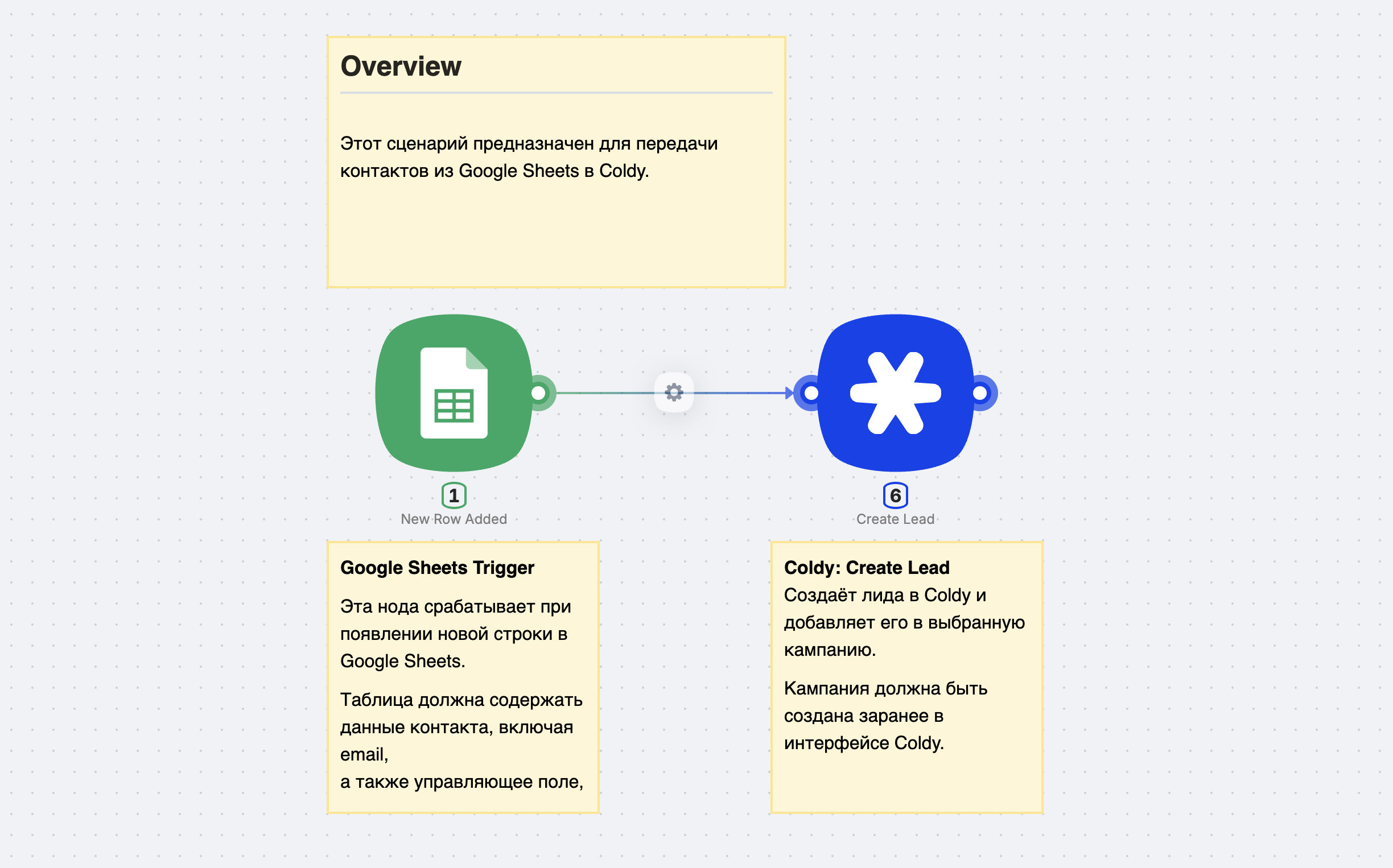 2. Передача контактов из Google Sheets в Coldy