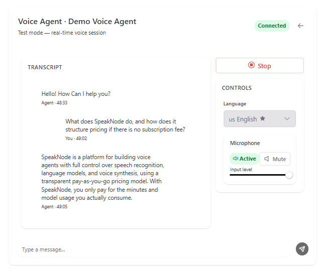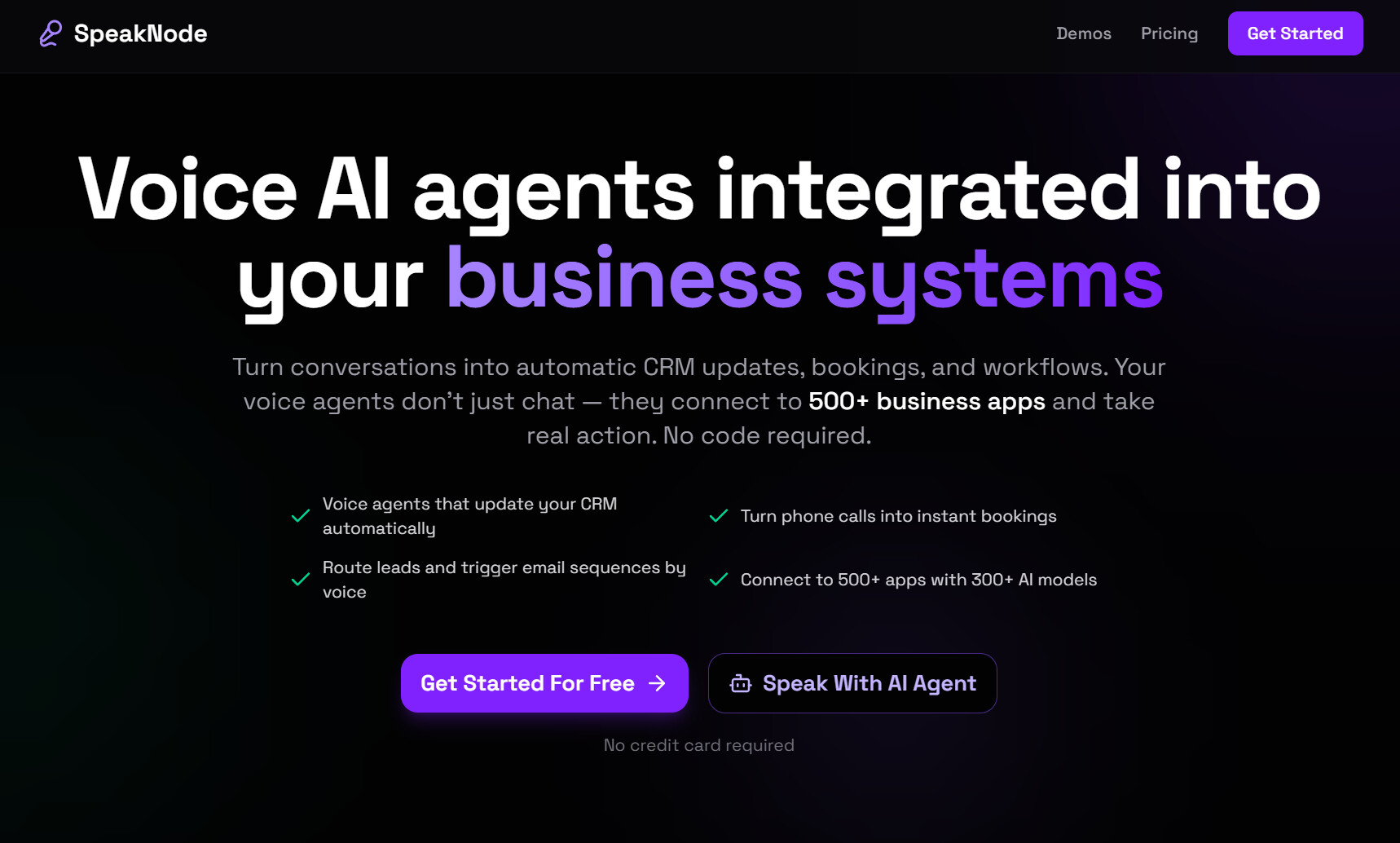 SpeakNode — российская платформа для создания продвинутых голосовых AI-агентов. Вы описываете поведение агента обычным текстом, выбираете голос — SpeakNode делает всё остальное: распознаёт речь, работает с вашими знаниями, генерирует ответы, синтезирует голос.