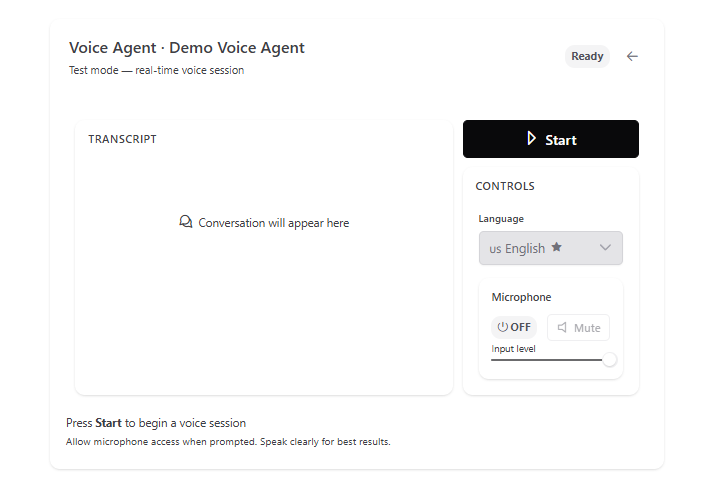 За несколько минут вы создали голосового агента, который отвечает на базовые вопросы о вашем бизнесе. Это уже рабочий инструмент — но для работы с реальными данными нужны интеграции с внешними системами.
