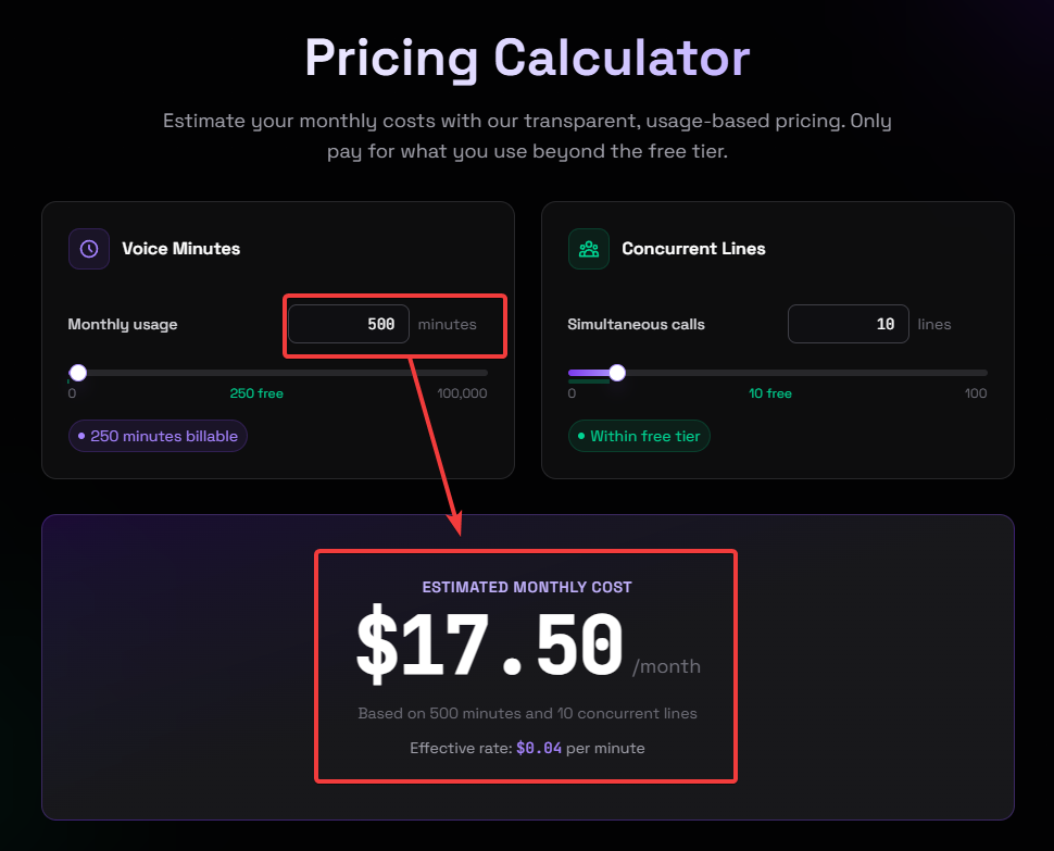 100 звонков × 5 минут = 500 минут в месяц. Стоимость: ~1,800₽/месяц.